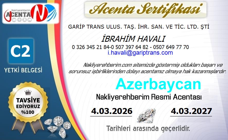 Yetkili Kişi: İBRAHİM HAVALI Telefon: 0 326 345 21 84 Gsm: 0 507 397 64 82 - 0507 649 77 70 E-Posta: i.havali@gariptrans.com |