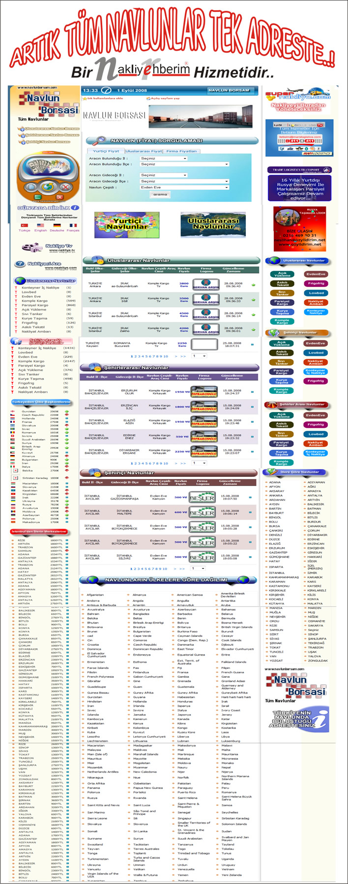 ve Dünyadaki tüm Uçak Gemi Tren Tırl'arın Yurtiçindeki Kamyon Tır ve tüm